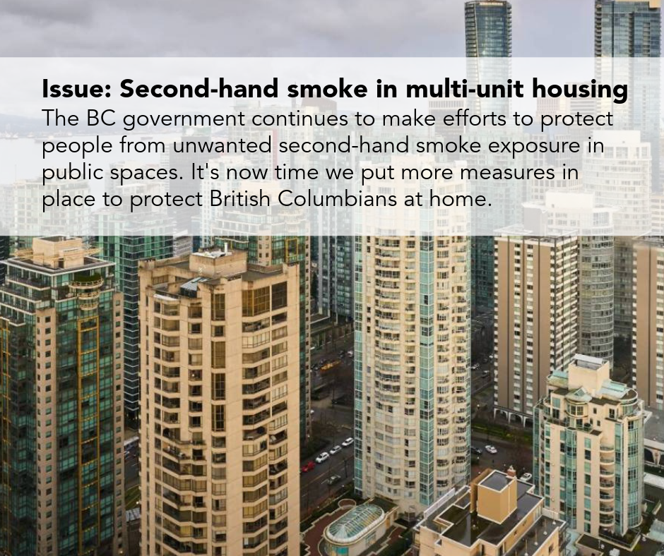 Our mission is to provide leadership and strategies to support people suffering from exposure to second-hand smoke in multi-unit housing and help increase supply of smoke-free housing in BC.